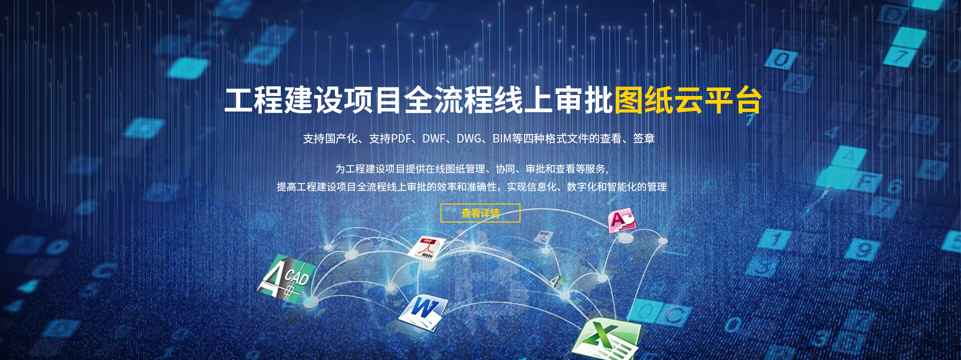 為工程建設(shè)項(xiàng)目提供在線圖紙管理、協(xié)同、審批和查看等服務(wù),提高工程建設(shè)項(xiàng)目全流程線上審批的效率和準(zhǔn)確性,實(shí)現(xiàn)信息化、數(shù)字化和智能化的管理。支持PDF、DWF、DWG、BIM等四種格式文件的查看及簽章,支持國產(chǎn)化。